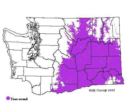 East of the Cascades, one can find Black-billed Magpies in open habitats year round. This is one of the most common and widespread birds of eastern Washington. Black-billed Magpies are very abundant in Yakima County and the Columbia-Snake River lowlands. They are extremely rarely reported in the western Washington lowlands in winter.