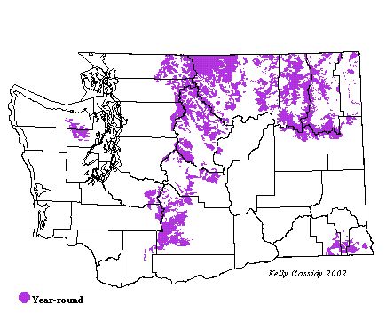 Clark's Nutcrackers are common in the alpine and sub-alpine zone around Mount Rainier, in the Cascades, especially on the eastern slopes, and in the Okanogan Highlands. They can be found as vagrants on the Olympic Peninsula'there is a small, resident population in the northeastern Olympic Mountains. They are found uncommonly in the eastern Blue Mountains.