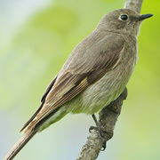 Gray overall with a tail edged in white on the sides, the Townsend's Solitaire is a nondescript bird. Males and females look alike, and both have white eye-rings and dark wingtips accented with cream. Perching birds show buffy wing-patches. In flight, buffy wing-stripes are evident.